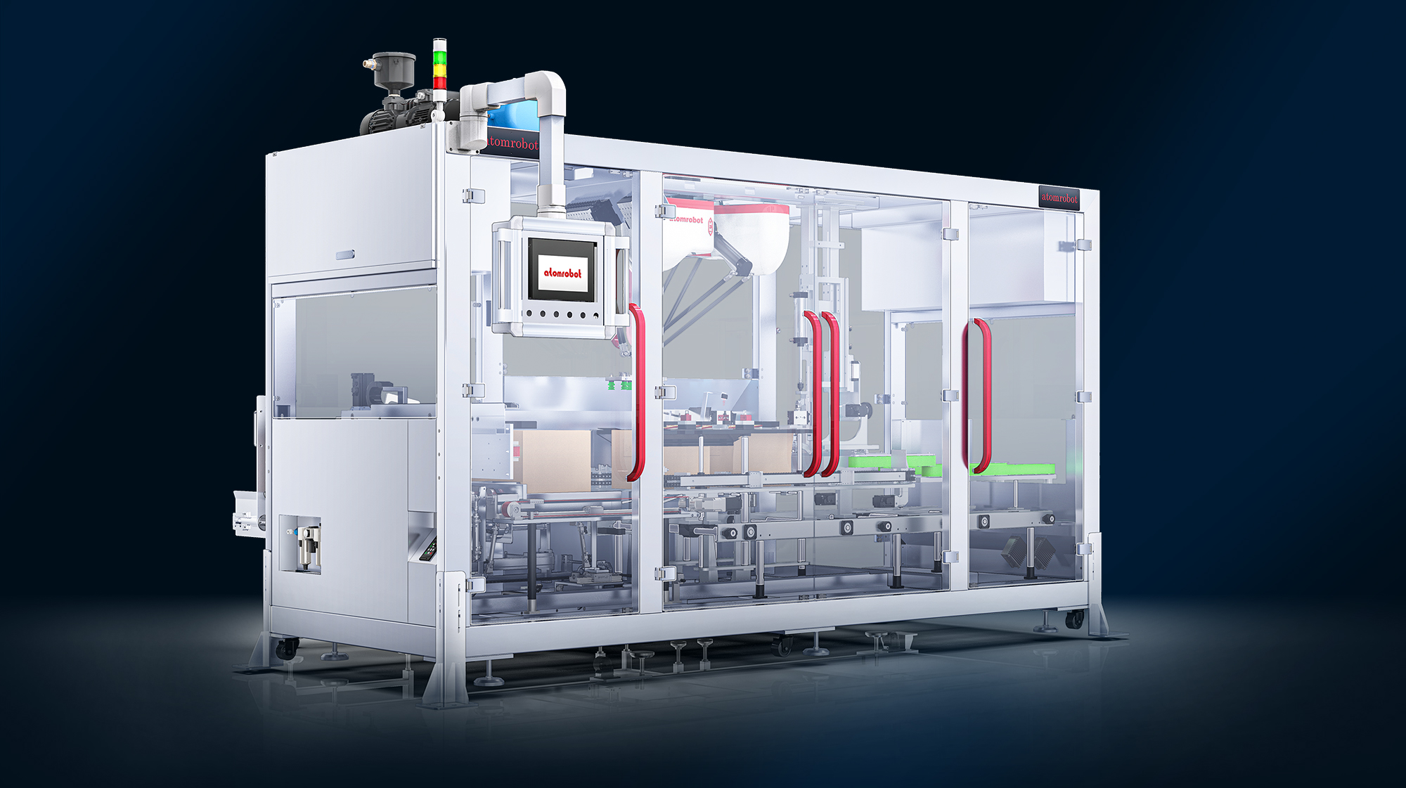 智能开封箱一体机——化繁为简,流程贯通。为食品企业多规格、快节奏的纸箱包装需求打造的智能开封箱一体机,创新集成开箱、封箱功能于一体,实现全流程自动化无缝衔接。无论是标准箱型还是异型定制箱,皆可高效应对。显著减少人工干预环节,杜绝因人工操作导致的包装质量波动与效率瓶颈,大幅提升包装环节的连贯性与整体产出,同时有效降低纸箱损耗。