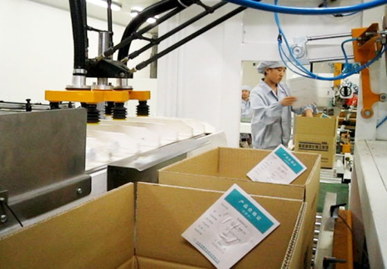 (阿童木机器人在石家庄四药输液软袋装箱)