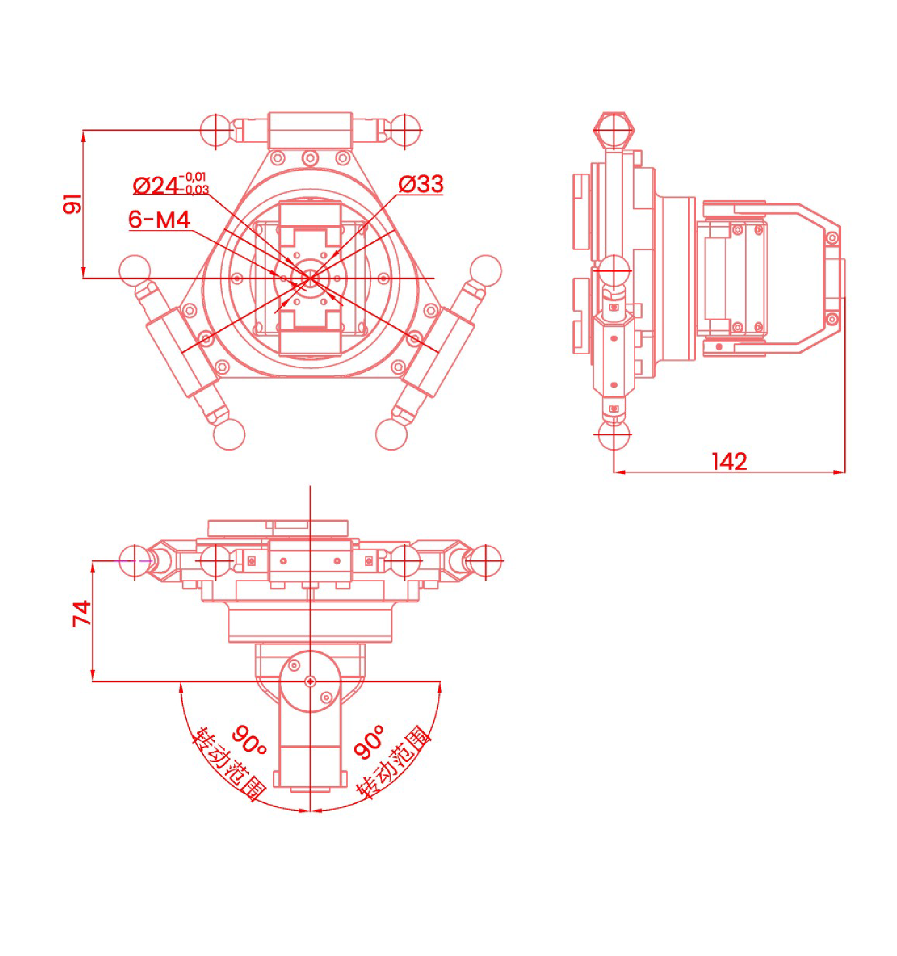 01.外形尺寸及运动范围(mm)