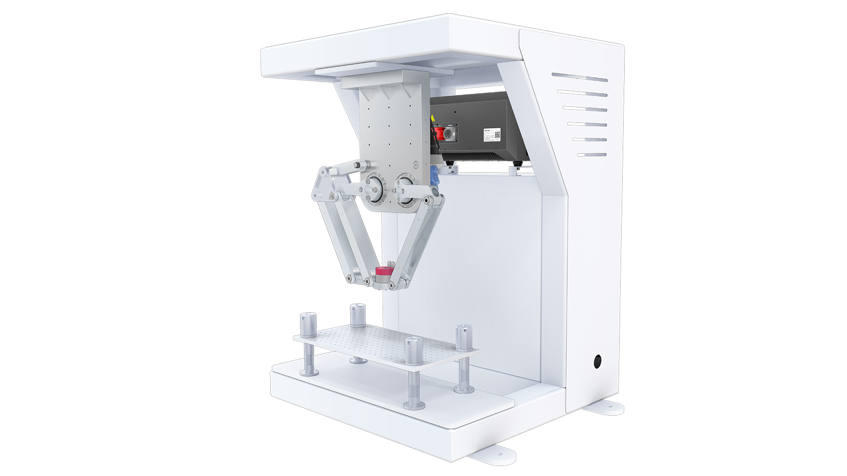 一款集成了高性能Delta机器人、驱控一体控制柜、工业摄像头和可自定义编程控制软件的一体化智能机器人工作站,支持双随动,最大负载可达3kg,重复定位精度±0.02mm,多种形式末端夹具自由选择,轻松搞定各种物料的分拣、装配等。