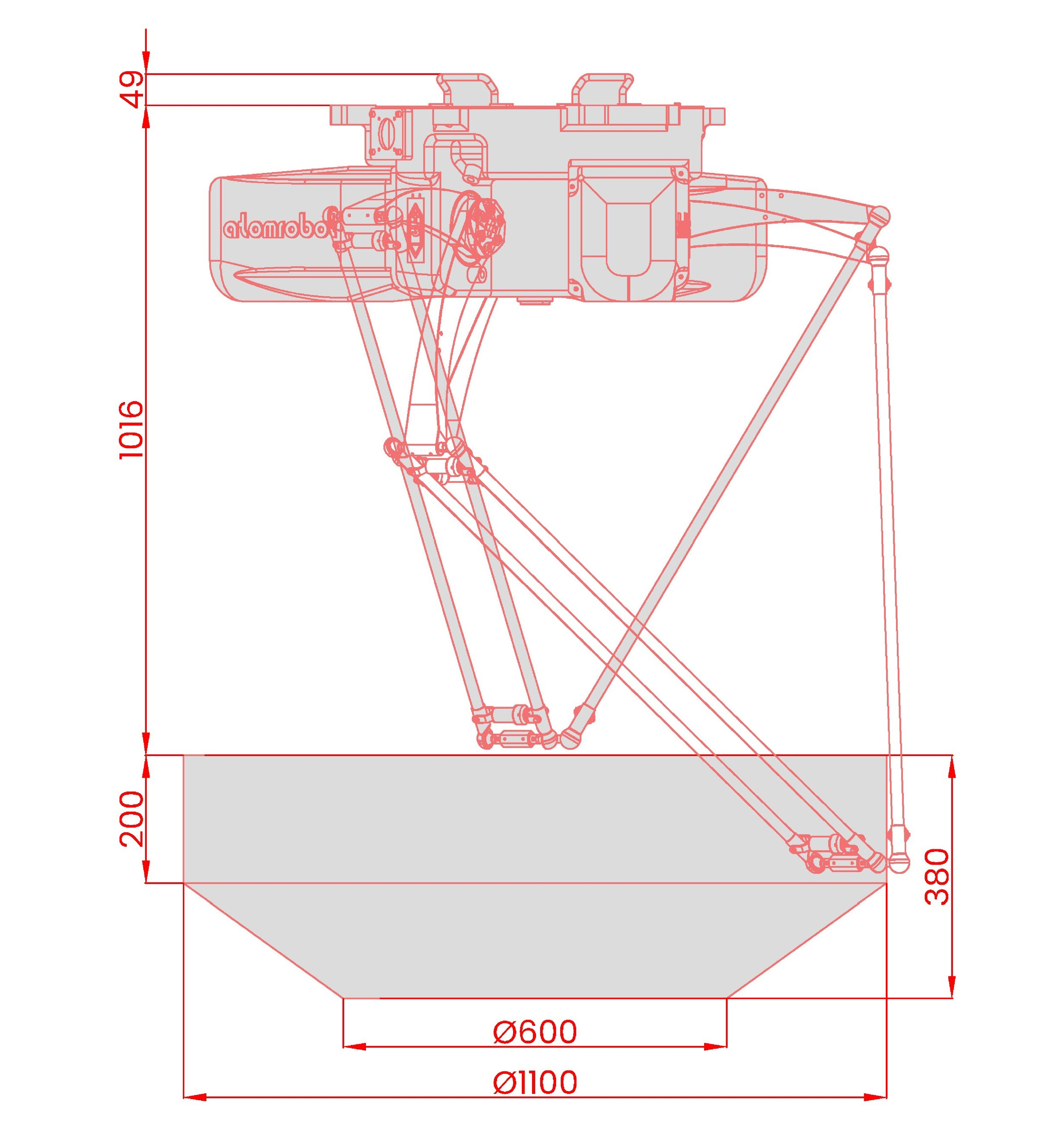 01.外形尺寸及运动范围(mm)