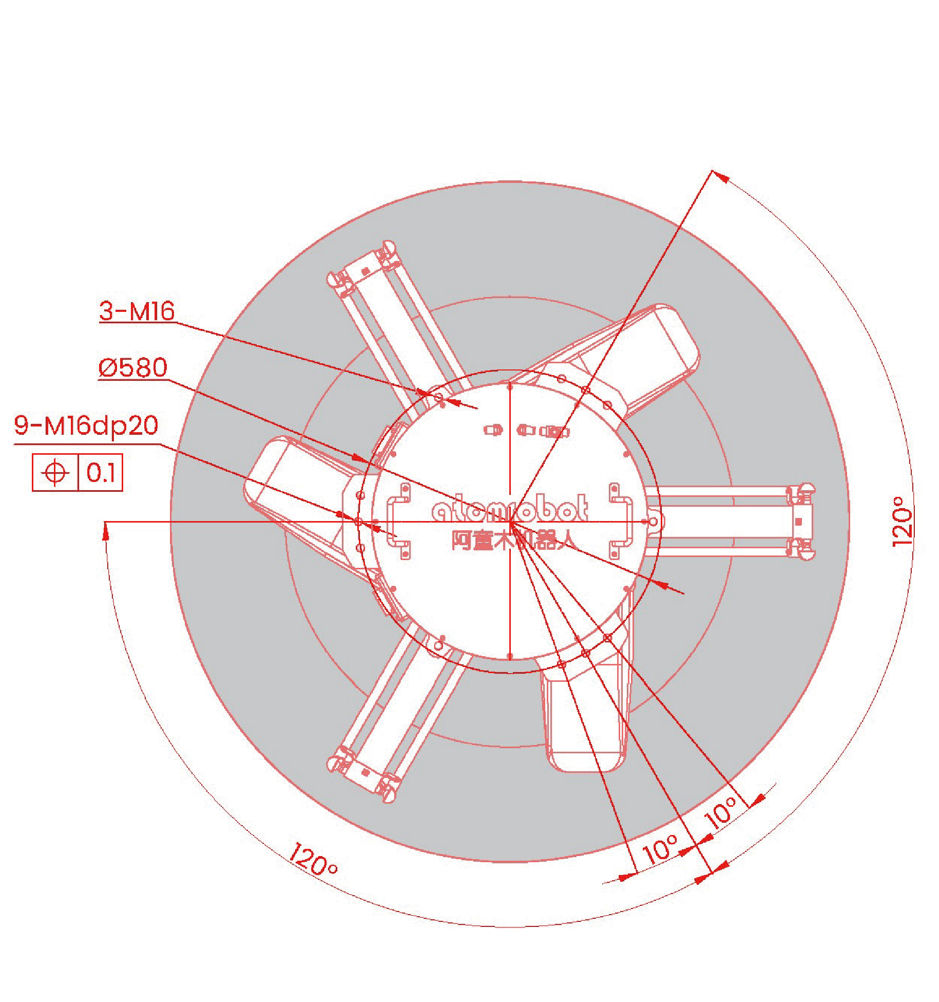• 01.外形尺寸及运动范围(mm)