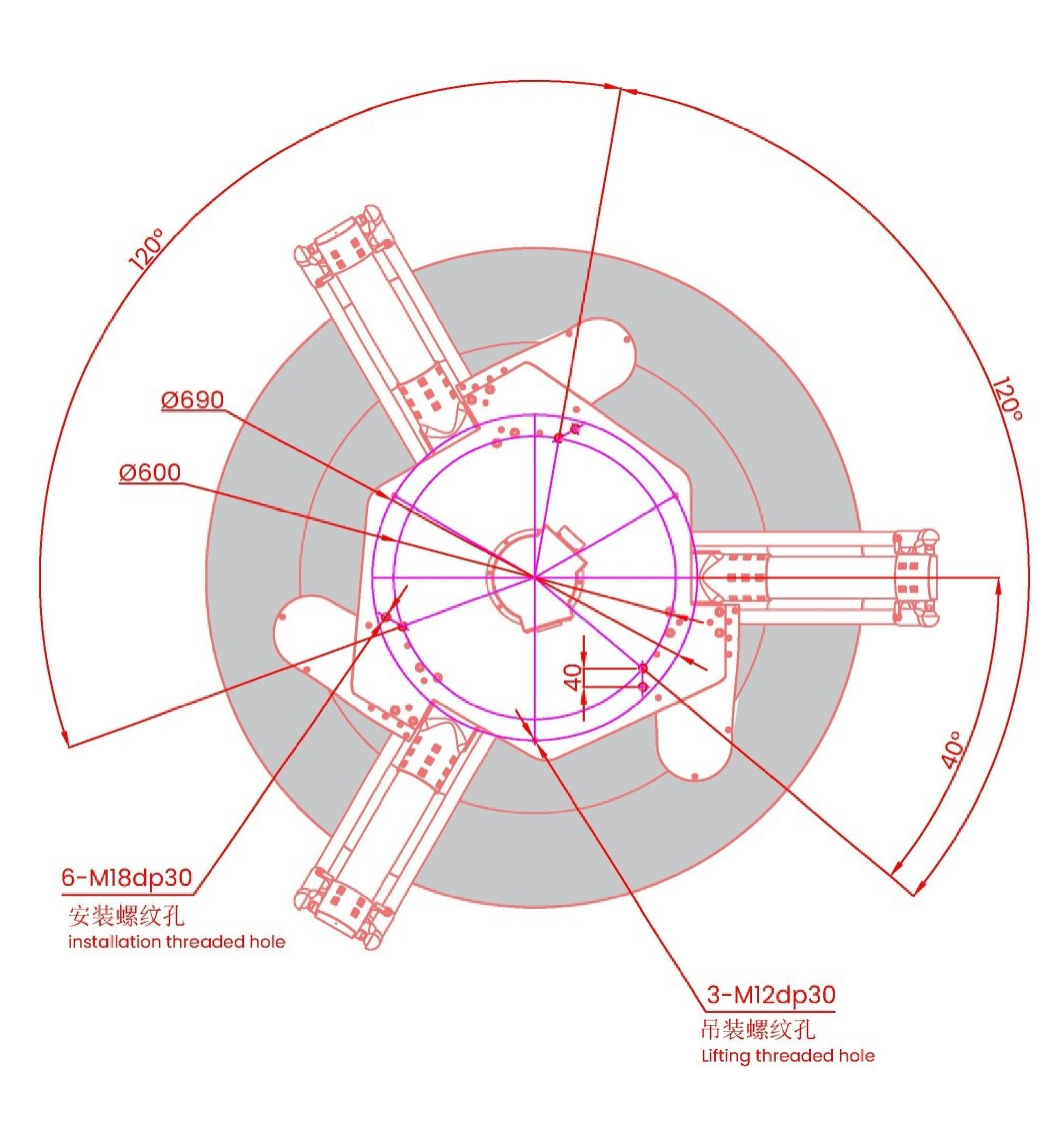 01.外形尺寸及运动范围(mm)
