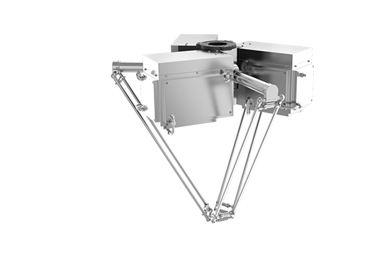 经典高速并联机器人的构型,具有沿三维空间XYZ轴平动和绕Z轴旋转的功能特点,通过搭配高精度机器视觉系统,适于食品、医药等行业的高速生产作业,主要用于轻小散乱物料的装配、搬运、分拣等。