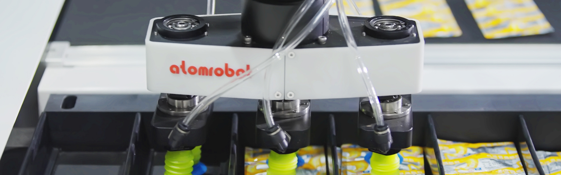 轮毂经由输送链条匀速移动至工业相机下方,通过视觉系统定位、识别、检测轮毂凹孔位置,并引导机器人从指定位置抓取堵头,跟踪放至凹孔中,依托负压检测机构,确保每一个凹孔准确投递,保证产品合格率。